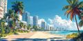 Vibrant Artistic Depiction of Miami Beach and Skyline