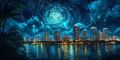 Miami's Skyline Enveloped by a Van Gogh-Inspired Starry Night