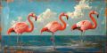 Vibrant Flamingos Against a Stylized Blue Ocean Background