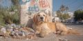 Golden Retriever Sitting by Urban Graffiti and Litter in Miami