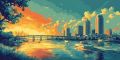 Miami Skyline at Sunset: A Vibrant Digital Art Representation