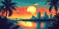 Tropical Sunset Over Miami: A Vibrant Art Deco Illustration