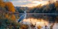 Serene Riverside View with a Graceful Heron at Sunset