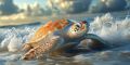 Majestic Loggerhead Sea Turtle Navigating Waves on Miami Beach