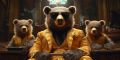 Florida Black Bear Mother and Cubs in a Sunlit Floral Meadow