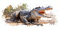 Vibrant Alligator Emerges in Stylized Florida Swamp Artwork