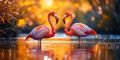 Majestic Flamingos at a Golden Hour River Gathering in Miami