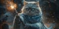 Ethereal Persian Cat Among Starry Cosmos: A Majestic Vision