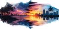 Tropical Sunset Over Miami's Skyline: A Vibrant Digital Art Masterpiece