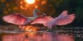 Majestic Roseate Spoonbill Spreads Wings at Sunset in Florida