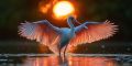 Majestic Roseate Spoonbill Against a Fiery Sunset Backdrop