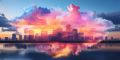 Vibrant Sunset Over Miami's Iconic Skyline Reflecting in Calm Waters