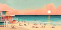 Retro Miami Beach Scene with Bold Colors and Serene Sunset