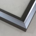 Unique geometric 1 " floater. The face of this molding features an off center peak which gives it a unique contrast in the right lighting. This frame comes in Metallic Blue Pewter with a dull satin finish.